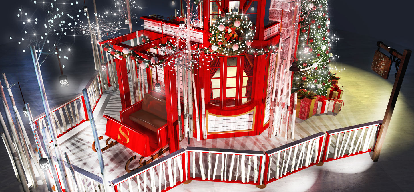 A collaboration with Dreamworks Animation, Dreamplace is a fully immersive interactive experience that takes visitors on adventure to visit Santa in his North Pole study. Dreamplace is wrapped in over 75% digital video allowing it's exterior to magically morph before your eyes. Dreamplace takes its visitors on a journey through 5 fully detailed interactive spaces including designing your very own 4d sleigh ride on your way to meet the Big Guy!